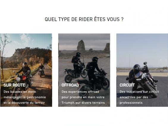 Que vous soyez attiré par un road trip sur les plus belles routes, une initiation à l’off-road ou des journées circuit encadrées par des professionnels, Triumph Ride vous propose des aventures adaptées à tous les styles de motards.
